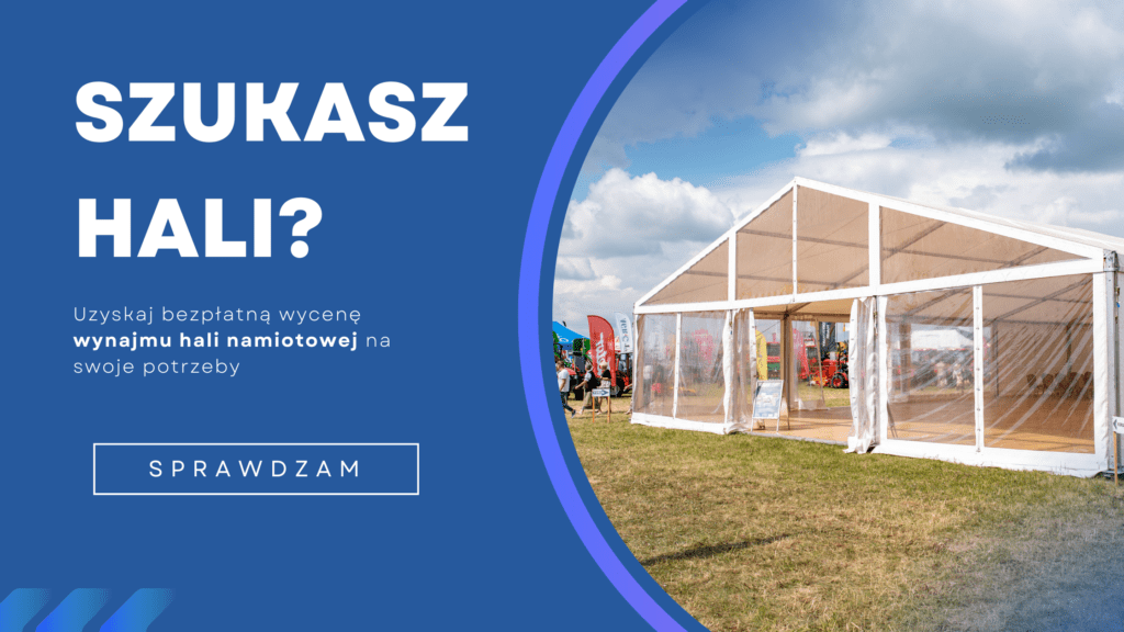 - Hale namiotowe o różnych rozmiarach: Od małych namiotów na imprezy rodzinne takie jak komunie lub jubileusze, po duże hale na koncerty i targi.